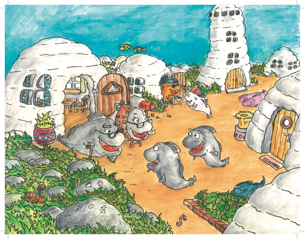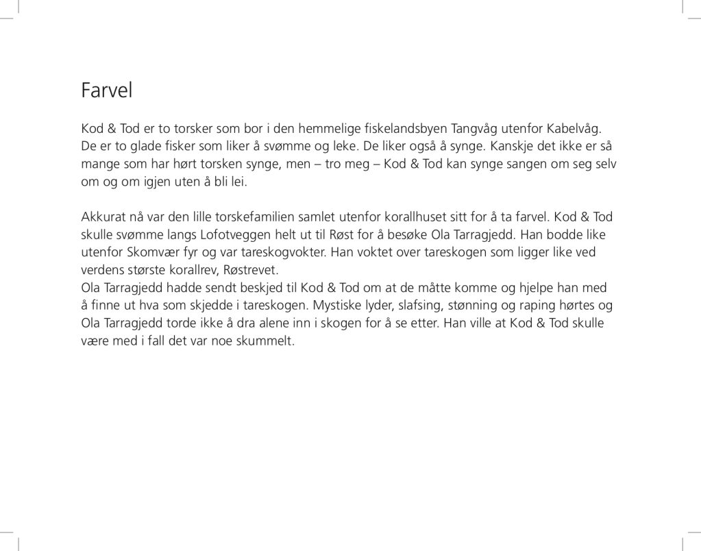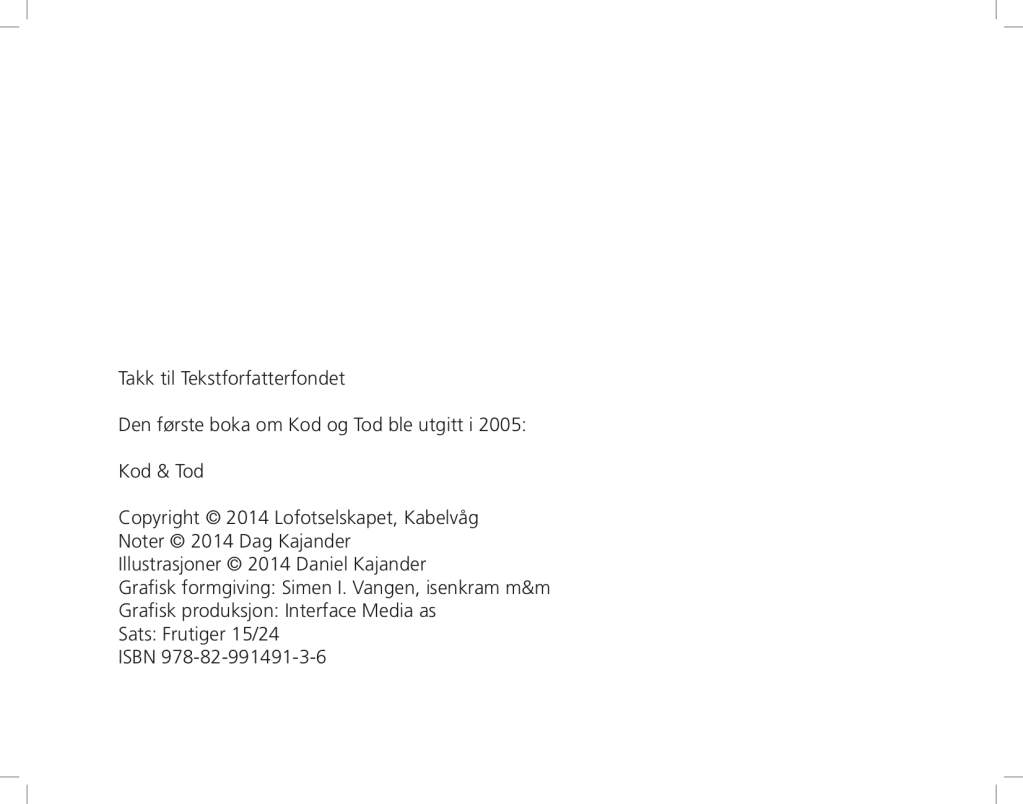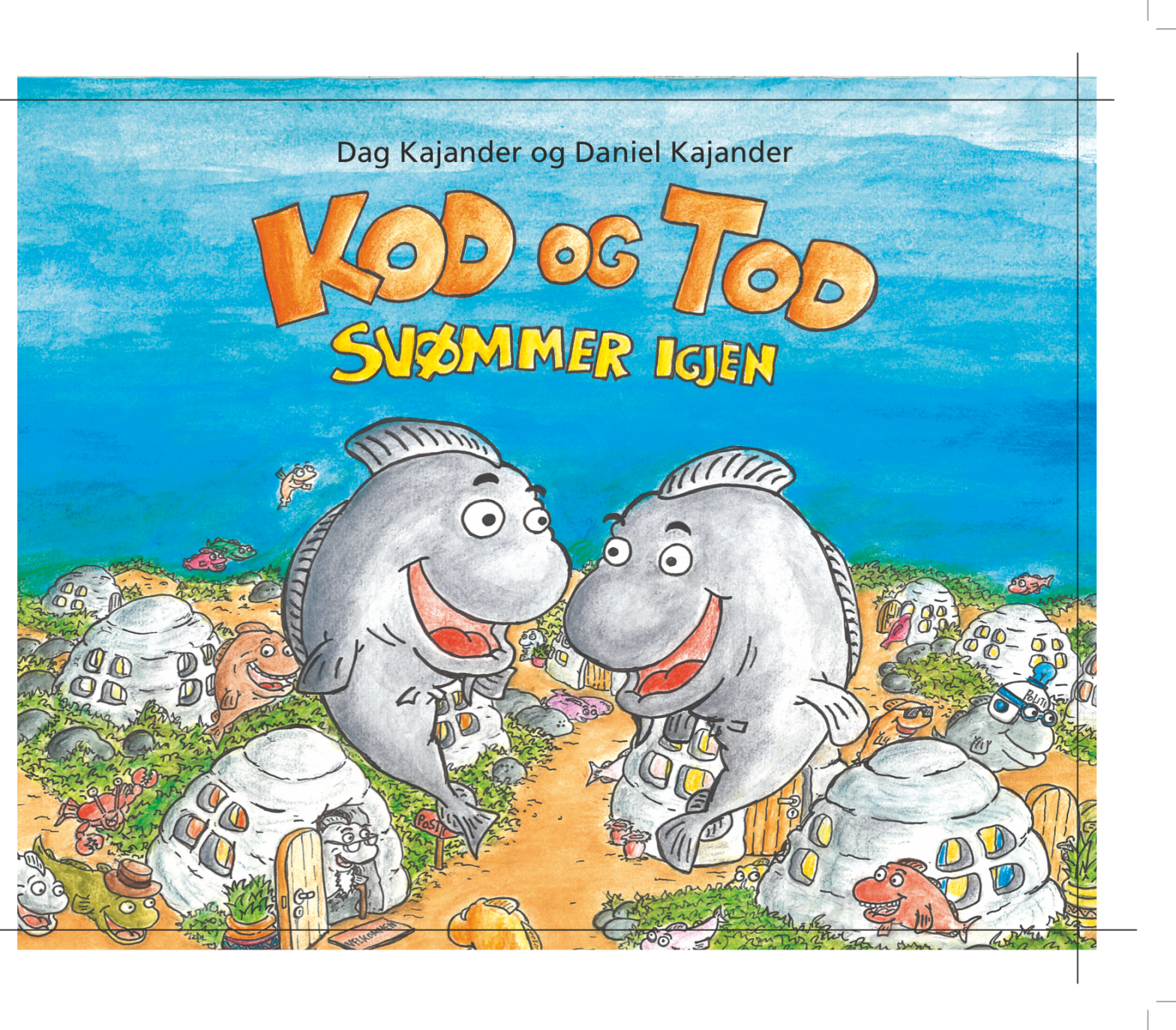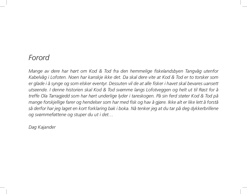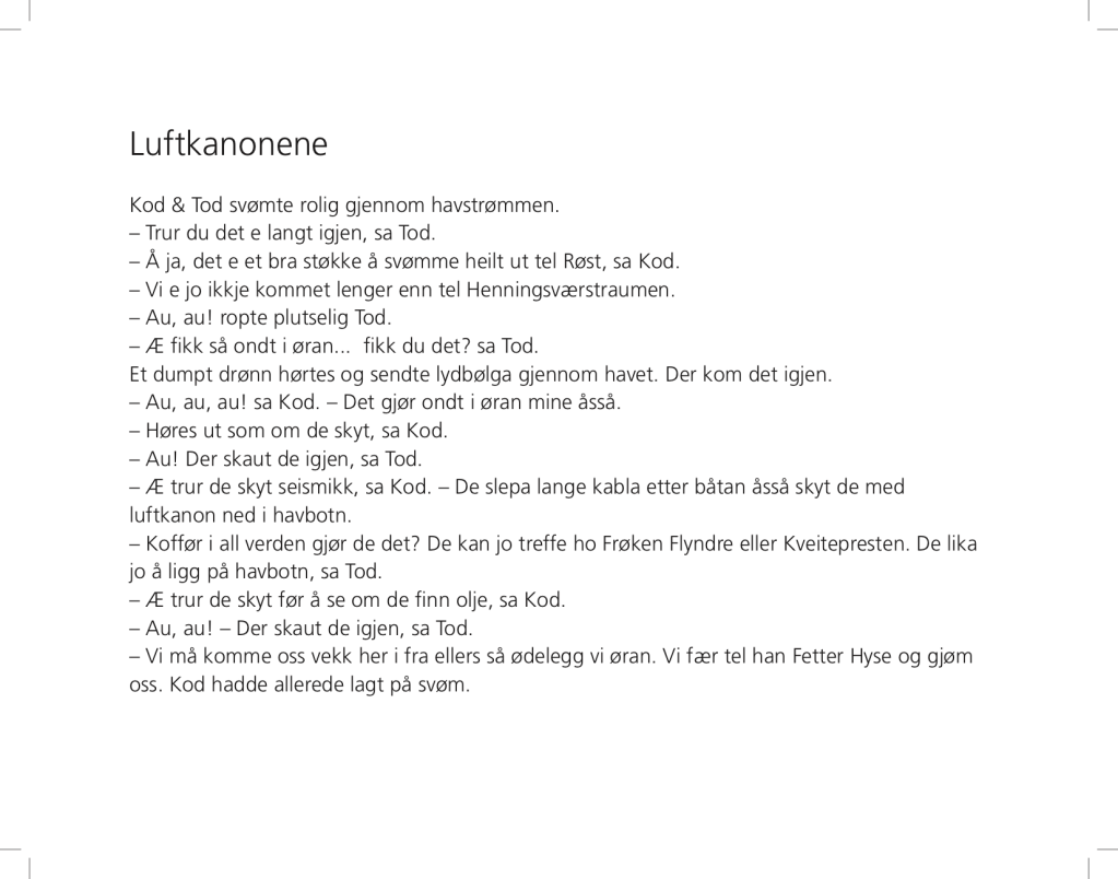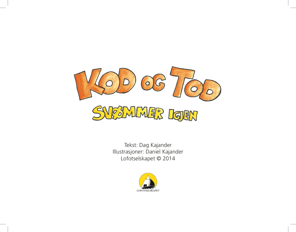 Layout for Dag & Daniel Kajander’s book “Kod og Tod svømmer igjen” (facsimile).